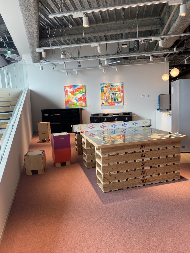 スタートアップ企業社員と、融資や投資、事業創造などを共に行う目的の大手企業社員が、自然に交流できるよう工夫されています。