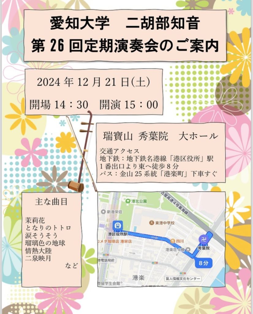 【愛知大学 二胡部知音 定期演奏会】